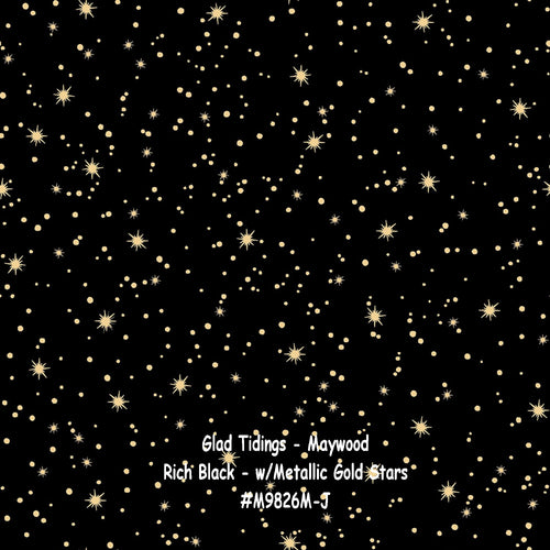 Glad Tidings - Maywood - Rich Black Star Bright with Metallic Gold Stars - #M9826M-J - ONE HALF YARD