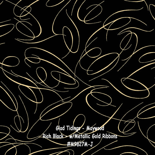 Glad Tidings - Maywood - Rich Black Graceful Ribbons with Gold Metallic - #M9827M-J - ONE HALF YARD