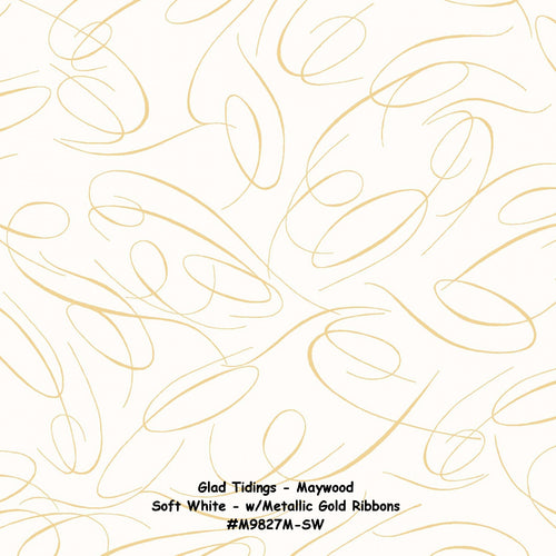 Glad Tidings - Maywood - Soft White Graceful Ribbons with Gold Metallic - #M9827M-SW - ONE HALF YARD